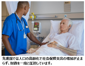 先進国では財政支出の拡大が続いています。人口の高齢化で社会保障支出の増加が止まらず、また米国の孤立主義傾向やロシアの積極的な軍事攻勢に伴い、国防費の増加が各国の財政に重くのしかかっています。米国とフランスでは構造的赤字の拡大に政治的対立が拍車をかけており、英国や日本では、医療費・社会保障費の増大が加速しています。