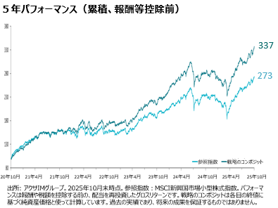 新興国小型株戦略は、2025年4月にトランプ関税の「解放の日」で大きく下落した後は堅調なパフォーマンスを維持しています。今後、新興国のインフラ関連がさらに整備され、新興国企業の成熟化が進むことで、事業や利益の更なる成長をもたらすことが期待されます。アクサIM新興国小型株式戦略では、クオンツ運用の優位性を活用し、小型株式企業の投資機会や成長性、分散投資を追求し、引き続き優れたリターン創出を目指します。