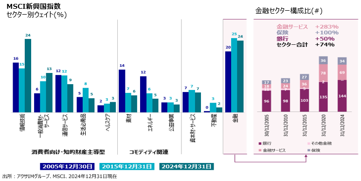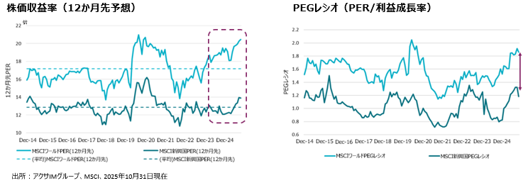 1:MSCI新興国指数 2:MSCIワールド指数 出所:アクサIMグループ、MSCI、2025年10月31日現在
