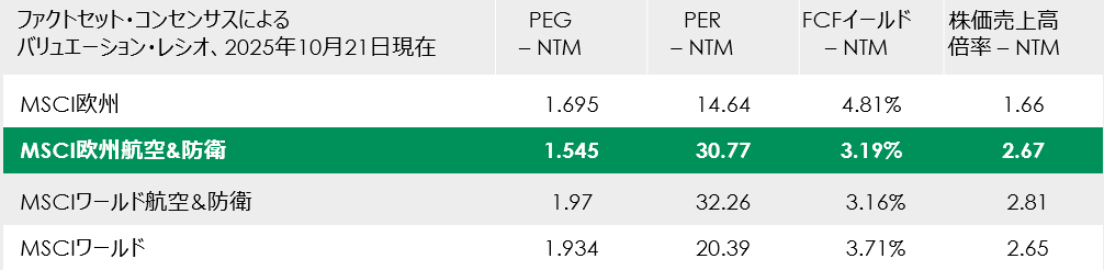 NTM: 今後12カ月間、PEG:株価収益成長率、PER:株価収益率、FCF:フリーキャッシュフロー、P/Sales: 株価売上高倍率。データは2025年10月21日現在。出所:ファクトセット
