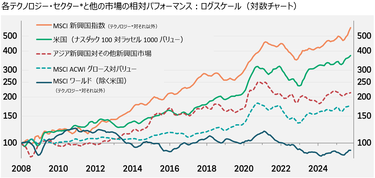 図表1:米国と新興国市場の両方でテクノロジー・セクターが超過パフォーマンスの原動力となっている