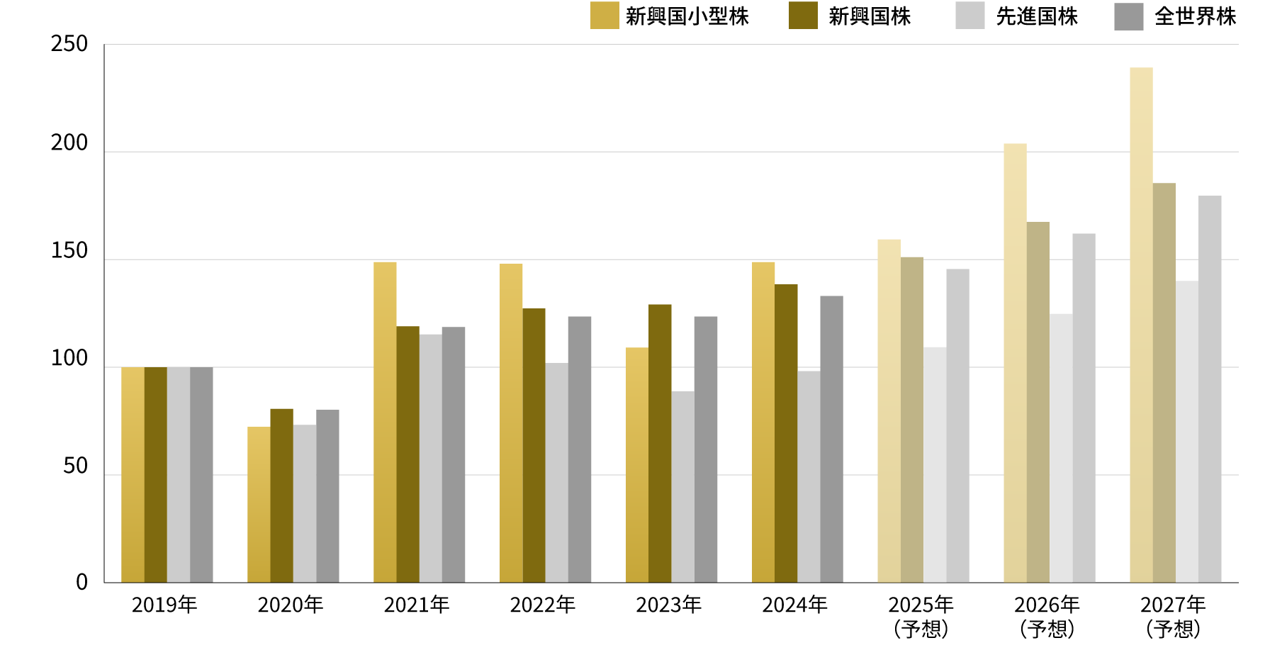 新興国小型株は、内需企業が中心となっているため、経済成長の恩恵をより直接的に享受することが期待されます。また、現地に根差した独自の成長ストーリーを持つ企業も多く存在します。