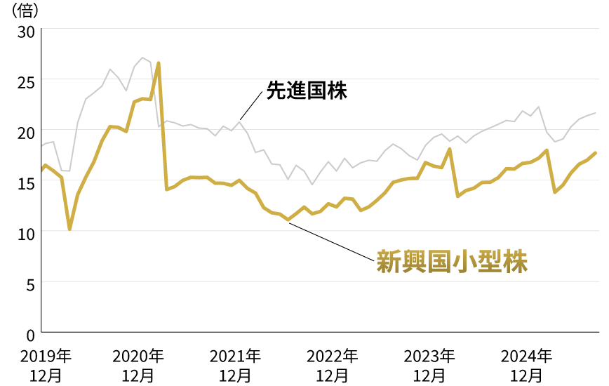 新興国小型株は、先進国株と比べて、割安な水準で取引されていることが多くあります。これは、情報の非効率性により、「市場で見過ごされている企業」が多く存在しているためだと考えられます。